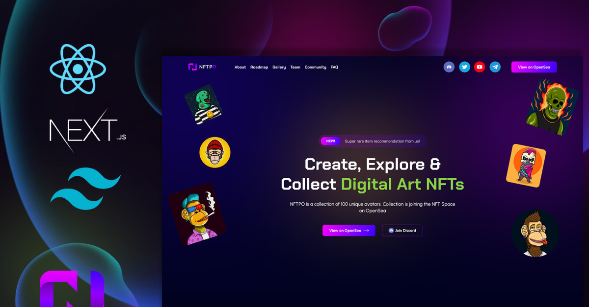 Nftpo – цільова сторінка проекту React NFT + NextJS + TailwindCSS