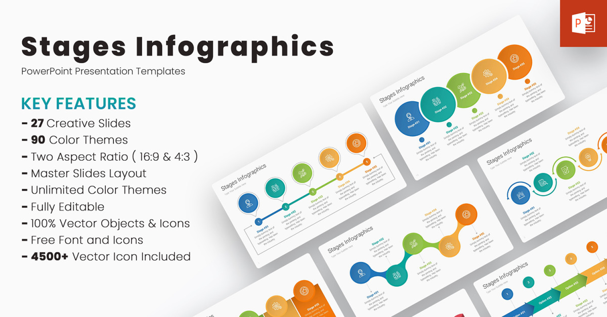 Наші шаблони інфографіки етапів PowerPoint забезпечують динамічний і візуально захоплюючий спосіб ілюстрації прогресів, процесів і трансформацій. Ці шаблони ретельно розроблені, щоб надати вашим презентаціям відчуття руху та зростання, завдяки чому складні концепції будуть легко зрозумілими.