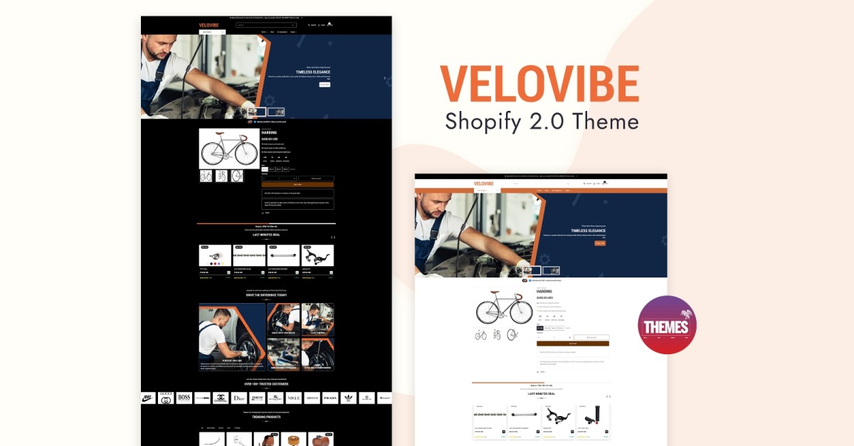 Готові вивести свій бізнес з автозапчастин на нові висоти? VeloVibe – це преміальна тема Shopify, ретельно розроблена для інтернет-магазинів, що продають автозапчастини, автомобільні аксесуари, інструменти, обладнання тощо. Завдяки своєму елегантному, сучасному дизайну, передовим функціям та бездоганному користувацькому інтерфейсу, VeloVibe дозволяє вам створити високопродуктивний магазин електронної комерції, який перетворює відвідувачів на лояльних клієнтів. Повністю сумісна з Shopify OS 2.0 , ця тема пропонує неперевершену гнучкість та можливості налаштування відповідно до бачення вашого бренду.