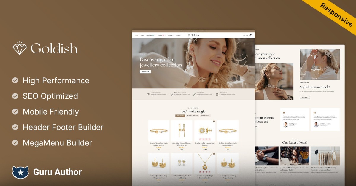 Goldish – Адаптивна тема WooCommerce Elementor для магазину ювелірних виробів, моди та імітацій