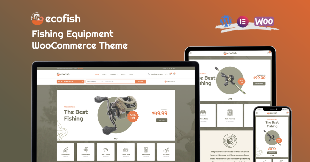 Завдяки унікальному та креативному дизайну тема Ecofish надає клієнтам абсолютно новий досвід роботи з магазинами обладнання для риболовлі, полювання та навіть риболовлі. Мало того, легке налаштування теми дозволяє клієнтам використовувати її для будь-якого продукту.