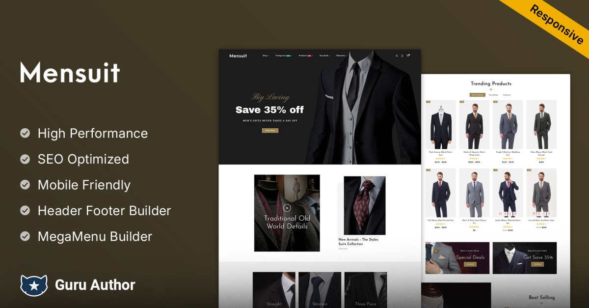 Незалежно від того, продаєте ви чоловічу моду, чоловічу нижню білизну чи створюєте елегантний магазин весільних суконь, MenSuit пропонує гнучку структуру. Ця тема ідеально підходить для магазинів у різних нішах, включаючи модні бутіки, офіційний одяг тощо, пропонуючи універсальність, яка відповідає вимогам різних ринків.