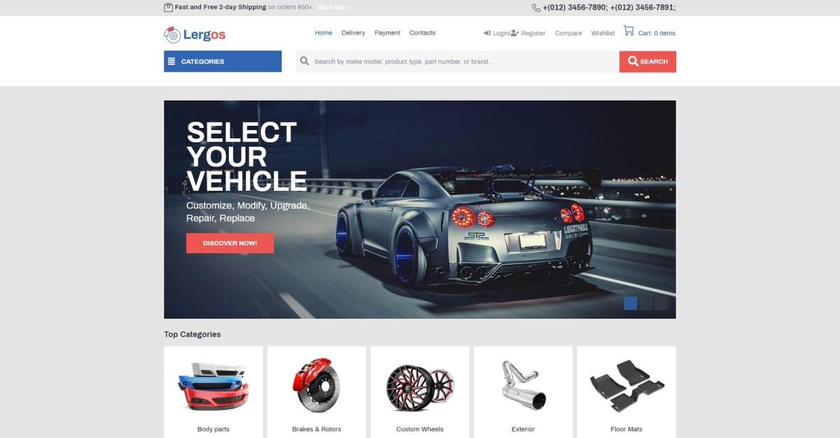 Створіть професійний інтернет-магазин автозапчастин за допомогою теми Lergos. Ви зможете розміщувати продукти за категоріями, демонструвати найкращі продукти, найкращі бренди та найкращі категорії за допомогою цієї теми. Також ви додасте необхідну інформацію про процеси доставки та оплати в зручній формі. Ви зміните зовнішній вигляд свого веб-сайту та додасте необхідні функції за допомогою потужного набору плагінів Jet для конструктора сторінок Elementor. Плагіни WooCommerce і JetWooBuilder є ідеальним поєднанням для відображення продуктів та їх класифікації. Плагін JetSmartFilters дозволить додавати різні фільтри AJAX на сторінки з продуктами. Використовуючи плагін JetCompareWishlist, ви дозволите відвідувачам легко та швидко створювати списки порівняння та списки побажань із бажаними товарами. Плагін JetProductGallery буде корисний для створення галерей із зображеннями товарів. За допомогою плагіна JetThemeCore ви виберете та вставите на сторінки попередньо розроблені розділи на різні теми без будь-яких знань програмування. Ви створите мегаменю зі спадними розділами та збагатите їх вмістом за допомогою плагіна JetMenu. Розширити функціональність колонтитулів можна буде за допомогою віджетів JetBlocks. Залучайте більше клієнтів завдяки зручній, адаптивній темі Lergos