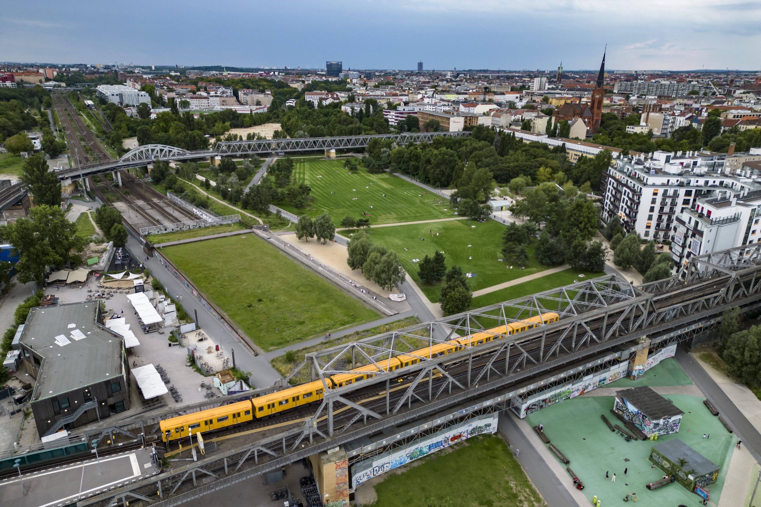 This did not come to pass, but the 12,650-tonne behemoth still stands protected as a monument in the no-man’s land between Schöneberg and Tempelhof and causes consternation to anyone who discovers it.