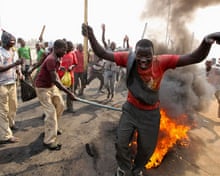 "This is oligarchy; this is not a democracy," shouted Danjuma Mohammed as he stood before the fire holding rocks in his hands. "We are no longer afraid of you. We are ready for war."