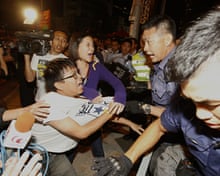 Hundreds of police scuffled with protesters as they battled for control for a road near the city’s government headquarters on Wednesday. Many in Hong Kong condemned the police after officers were seen kicking a handcuffed protester and dragging dozens of others away.