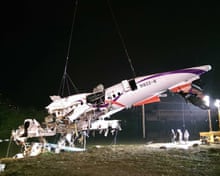 TransAsia GE 235, a domestic flight from Taipei to Kinmen – a small archipelago near mainland China – crashed at 10.56am local time, according to Taiwan’s aviation council, about three minutes after it took off. Astonishing dash-cam videos posted online showed the turboprop ATR 72-600 aircraft in its final airborne moments, turning vertical over a highway and clipping a taxi cab and a bridge with its left wing.