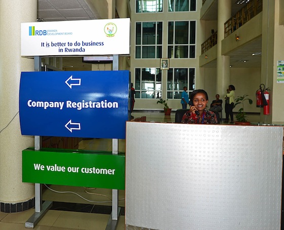 You need to register your company at the Rwanda Development Board, either in person or online. A certificate of registration is delivered in six hours. The RDB business registration service also allows registration for taxes and employee social security.