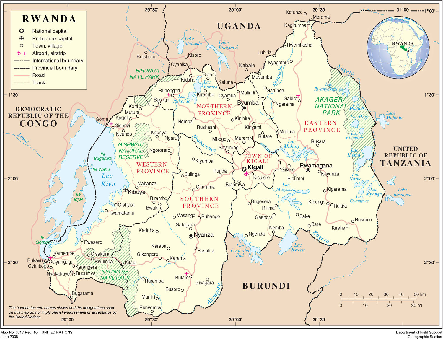 Domestic airports and airfields include Butare, Cyangugu, Gisenyi (on the border with DRC), Nemba and Ruhengeri.There is some internal lake transport, although only that on Lake Kivu is of significant economic value, as it connects Rwanda to the DRC market. Studies are being made on the navigability of the Kagera River (and its tributaries) which passes through nearly all the provinces of the country and serves as a border with Tanzania and Uganda.