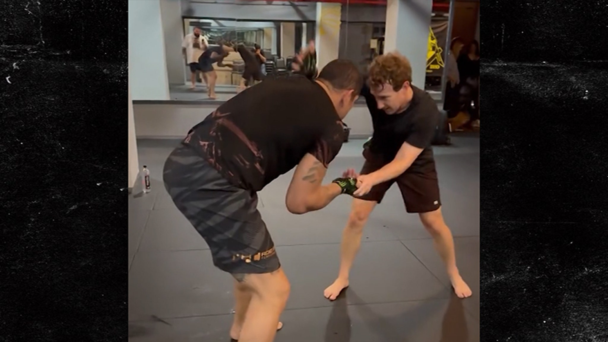 The guys poured sweat during grappling drills, and Zuckerberg even threw hands at the star fighter in stand-up work.