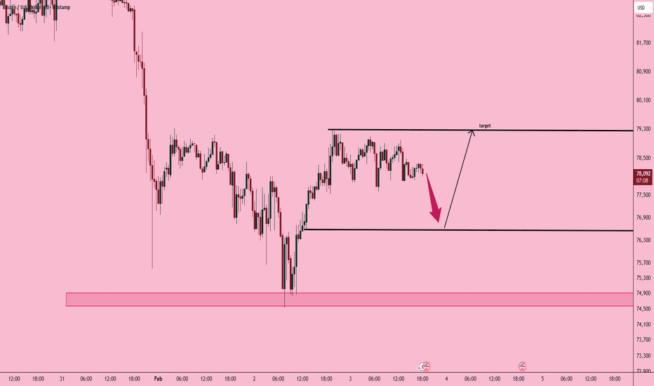 Bitcoin Price Update – Clean & Clear ExplanationBitcoin is currently consolidating after a sharp sell-off, trading around 78,900. Price action is forming a symmetrical triangle, showing indecision as buyers and sellers compress price toward a breakout point.