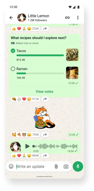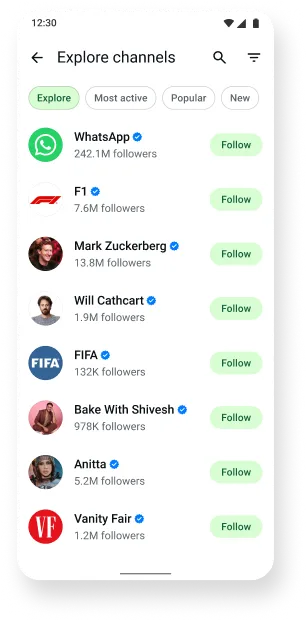 WhatsApp Channels is a simple and private way to get useful updates from the people and organizations you care about.
