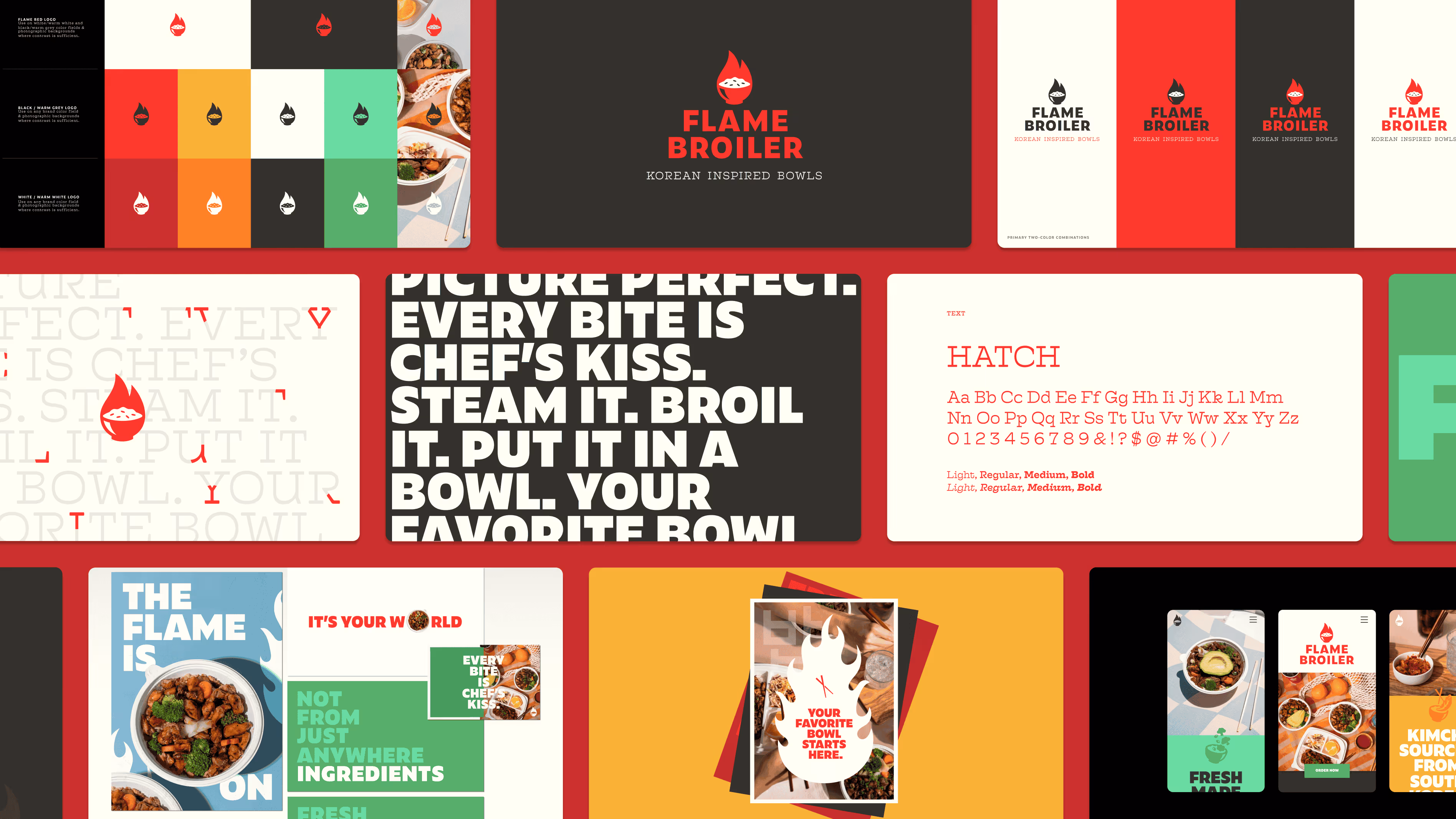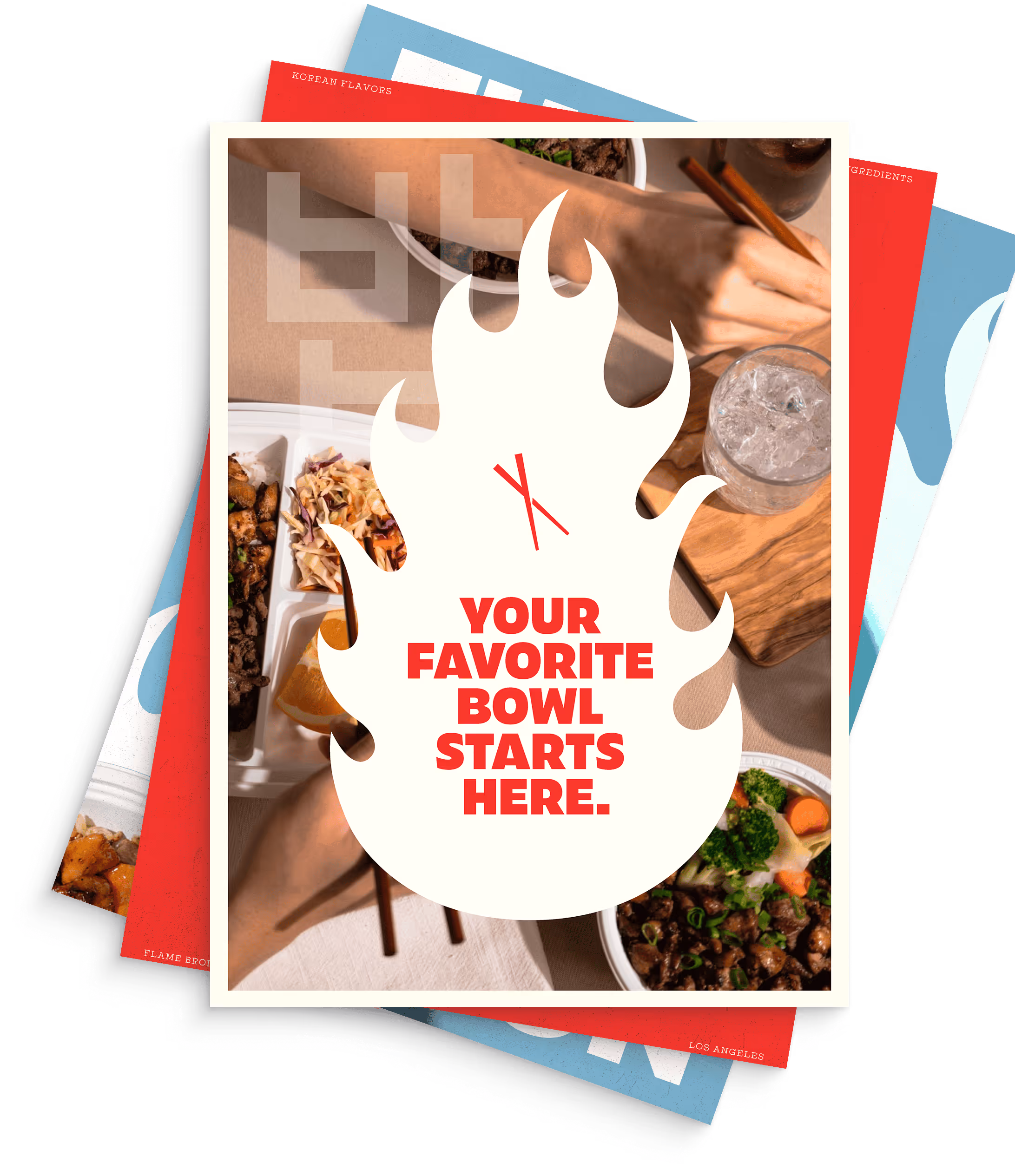 Thirty years of history and 135 stores in six markets made a rename tricky. Instead of a rename, Whiteboard developed a more descriptive tagline that quickly told customers what to expect of the menu. We also designed a new visual identity that leveraged Flame Broiler’s Korean roots and captured the history, heart, health, (and heat!) of the brand. Additionally, Whiteboard leveraged photography and an illustrative iconography system that showcased the power of simple ingredients coming together to create something bold and tasty.