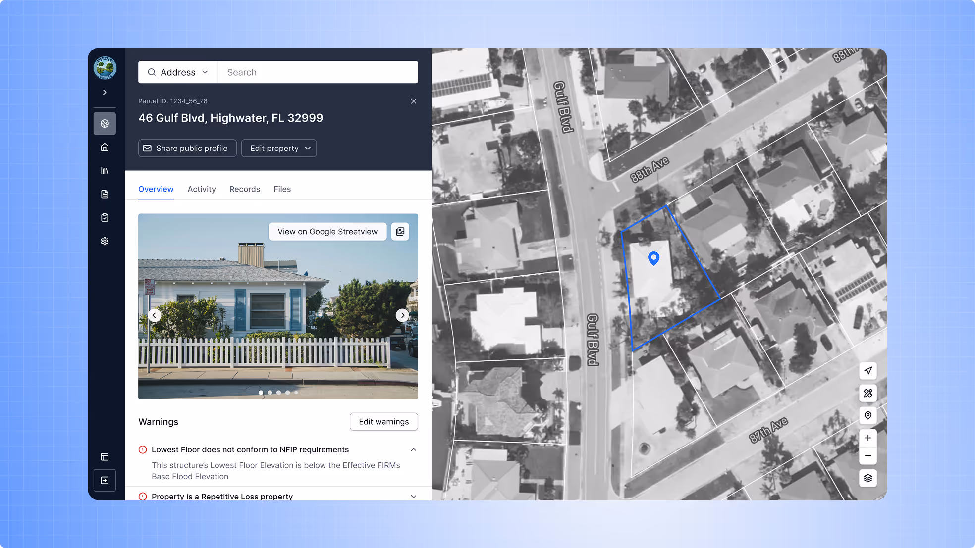 Search instantly by address, coordinates, or parcel ID to jump to the location that matters.