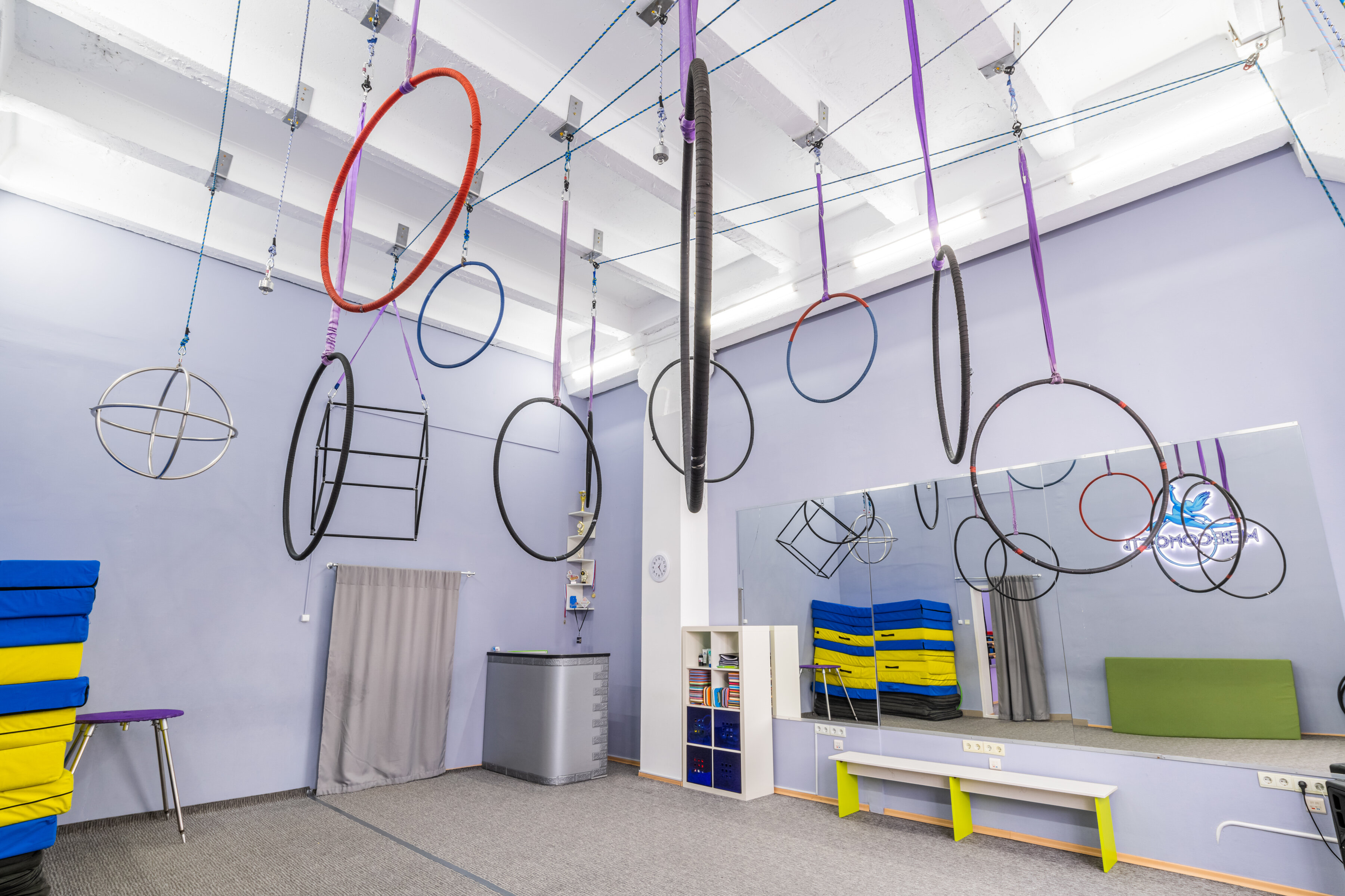 В тренажерке из-за высоких потолков очень комфортно заниматься. Администраторы на рецепции всегда помогут с любым вопросом